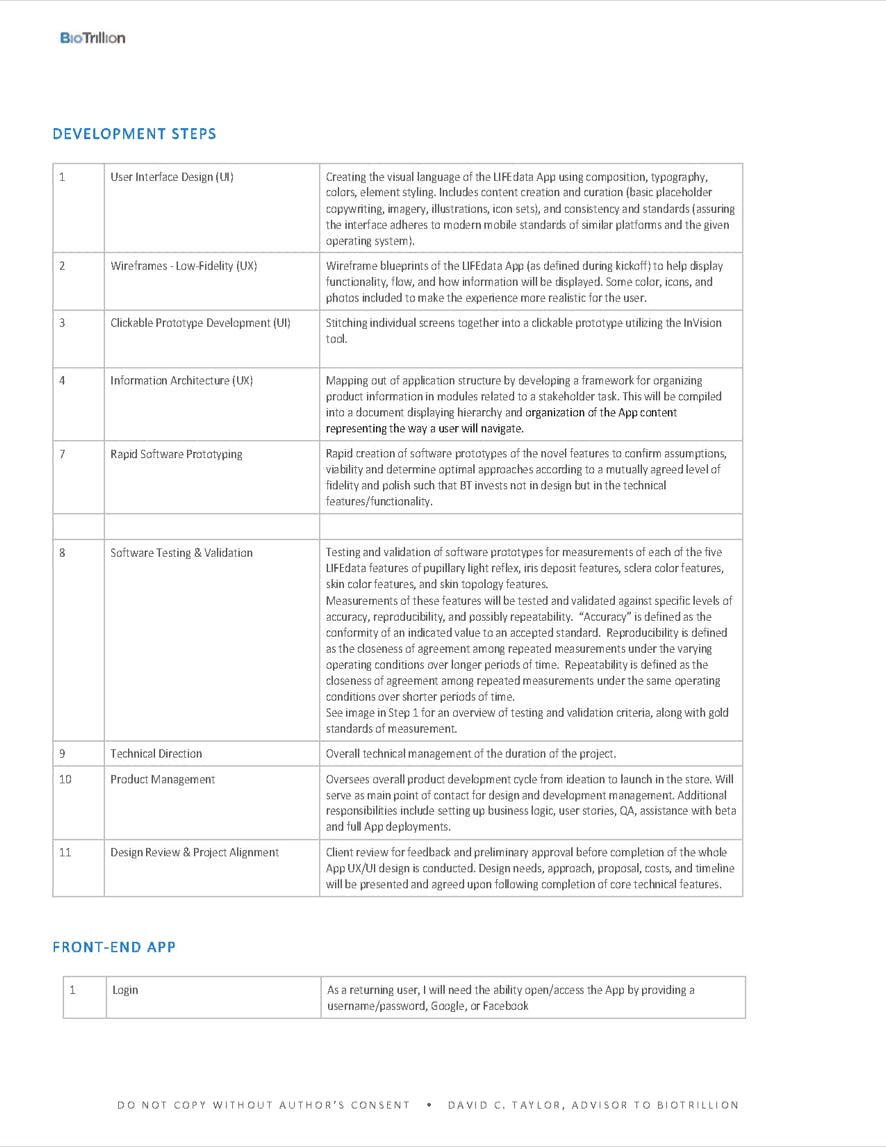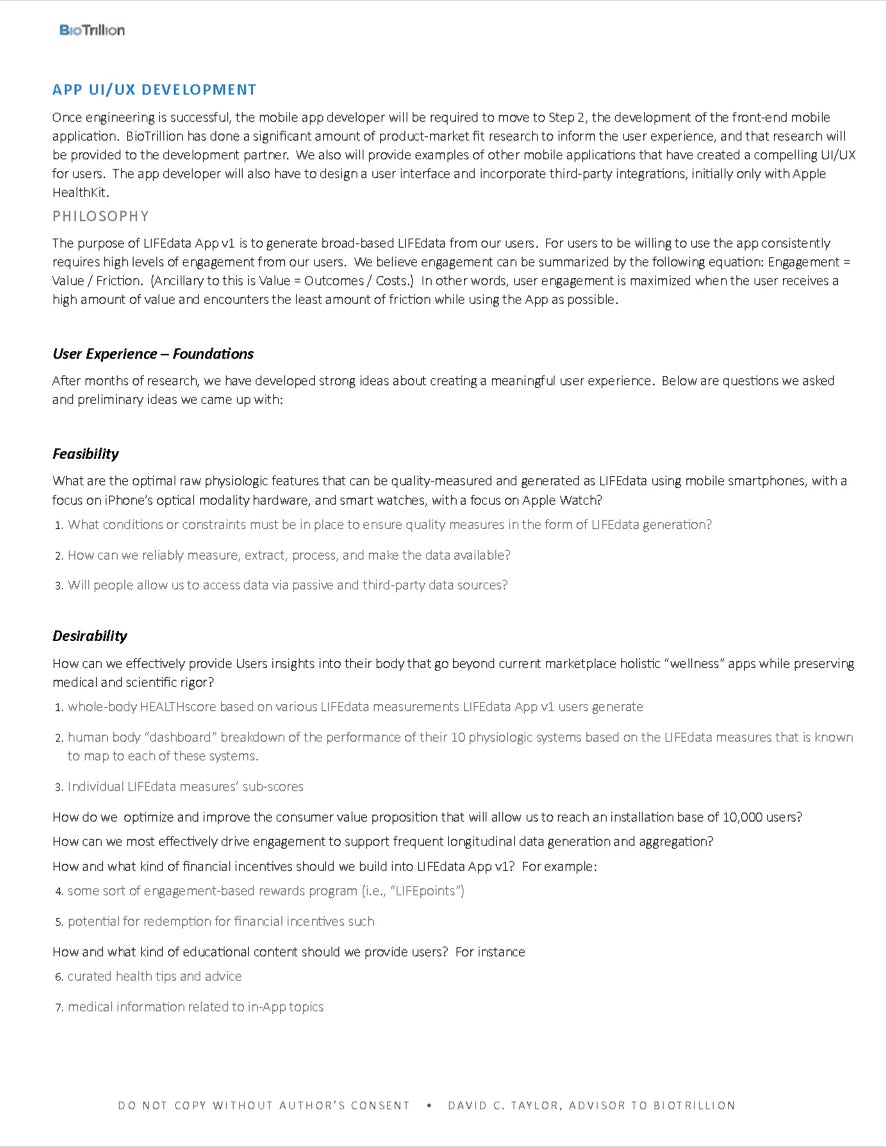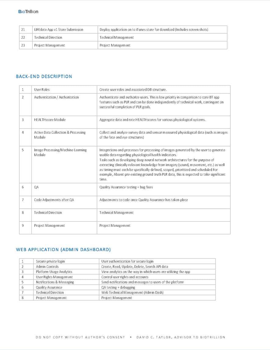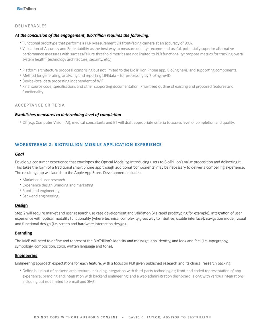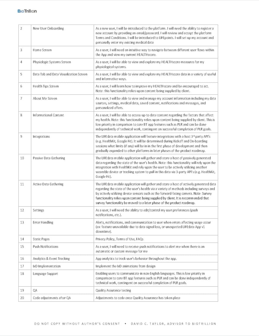 As advisor to health tech startup BioTrillion, I was the first product manager. I authored the initial product requirements and roadmap, putting into place product development processes and hiring AI and computer vision (CV) engineers.