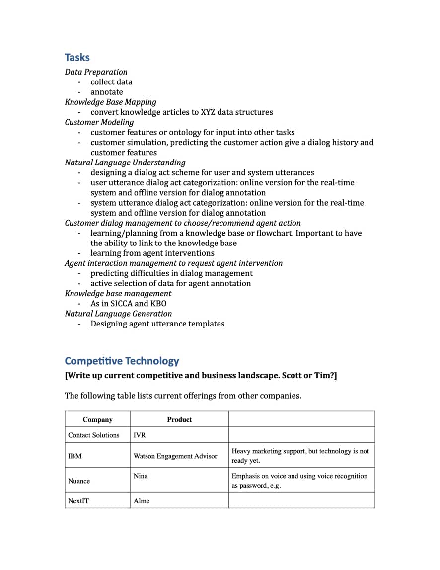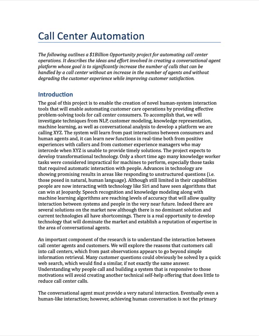 This is a proposal from my work at Xerox PARC, where I was an intrapreneur collaborating with engineering and science labs, developing MVPs and commercializing PARC IP.