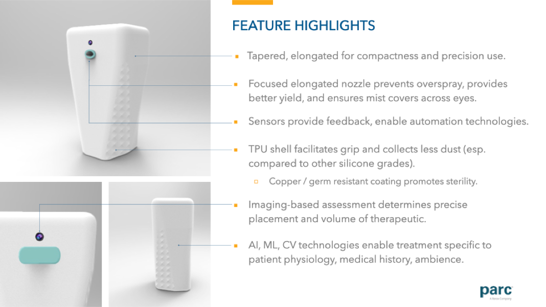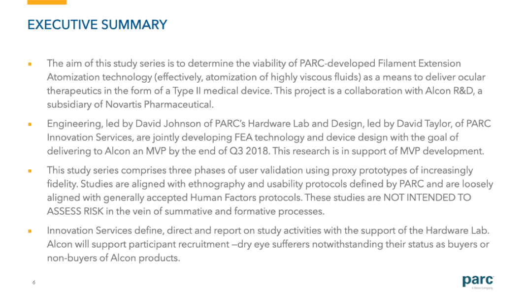 Excerpts from a series of reports on the viability of Filament Extension Atomization technology (atomization of highly viscous fluids) as a means to deliver ocular therapeutics in the form of a Type II medical device.
