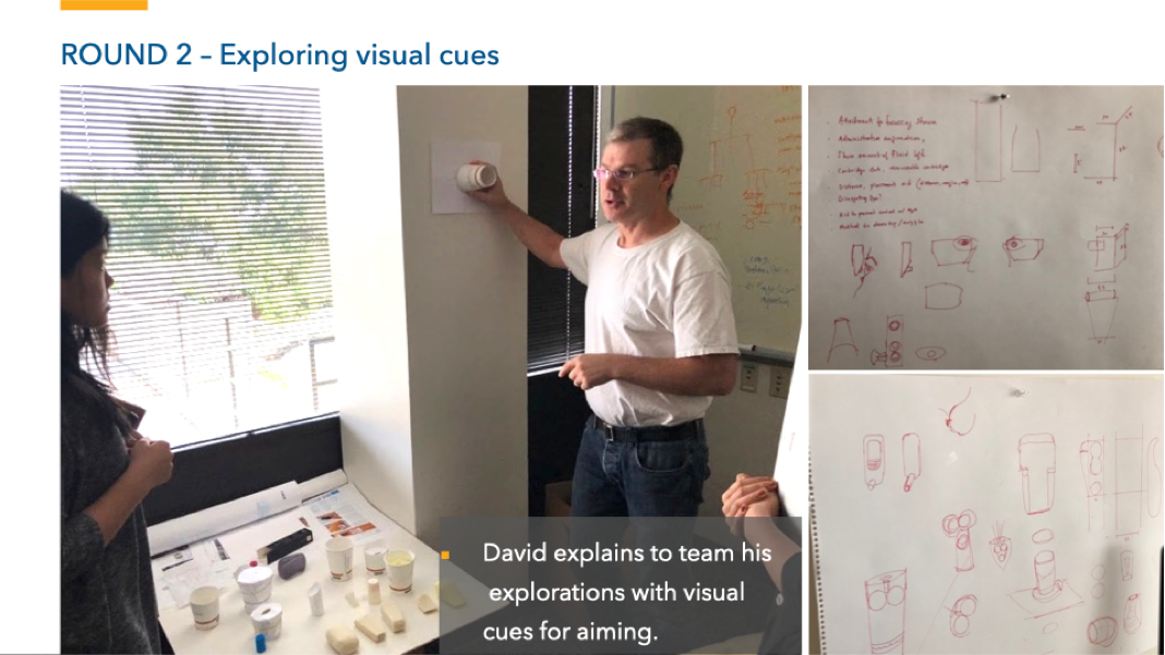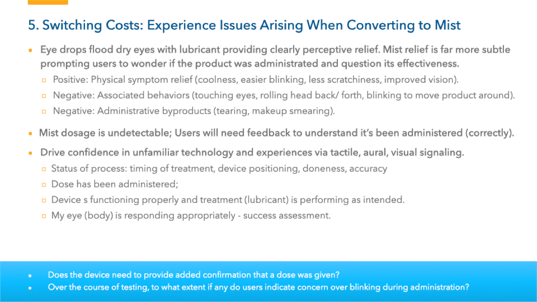 A particpant relates his experience administering eye drops (dry-eye lubricants). Such discussions served to inform product development and product viability decisions.