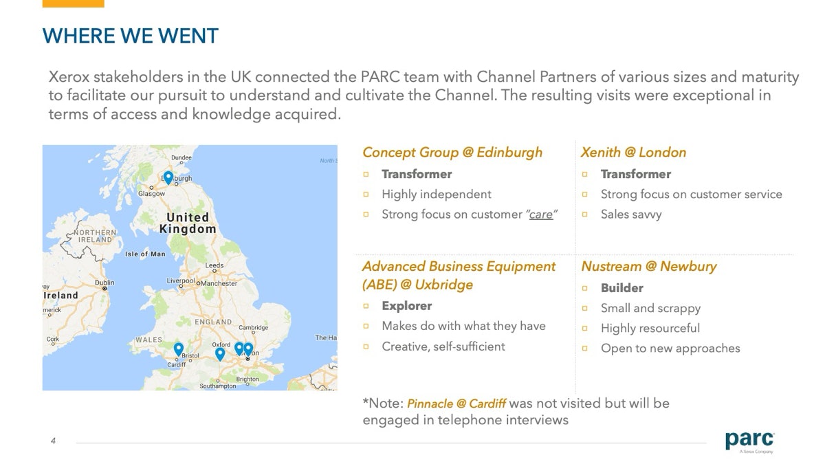 We conducted observational studies and interviews in the offices of Channel and Partner stakeholders in the USA and UK. We also discretely created a Channel Partner business of our own to understand issues firsthand. Findings and recommendations were presented every other month, concluding with a collaborative feasibility report.