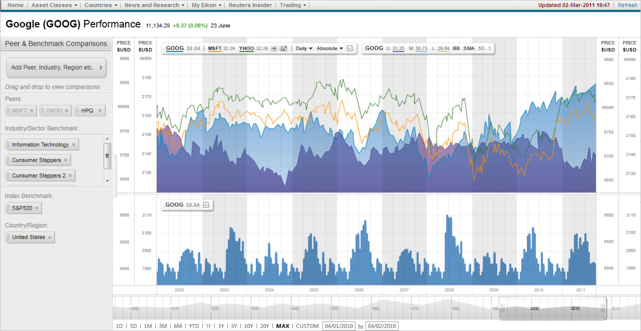Financial professionals use Eikon to monitor and analyze financial information. It provides access to real time market data, news, fundamental data, analytics, trading and messaging tools. Subscribers access Eikon via desktop, mobile device or web browser, as well as programmatically via APIs.