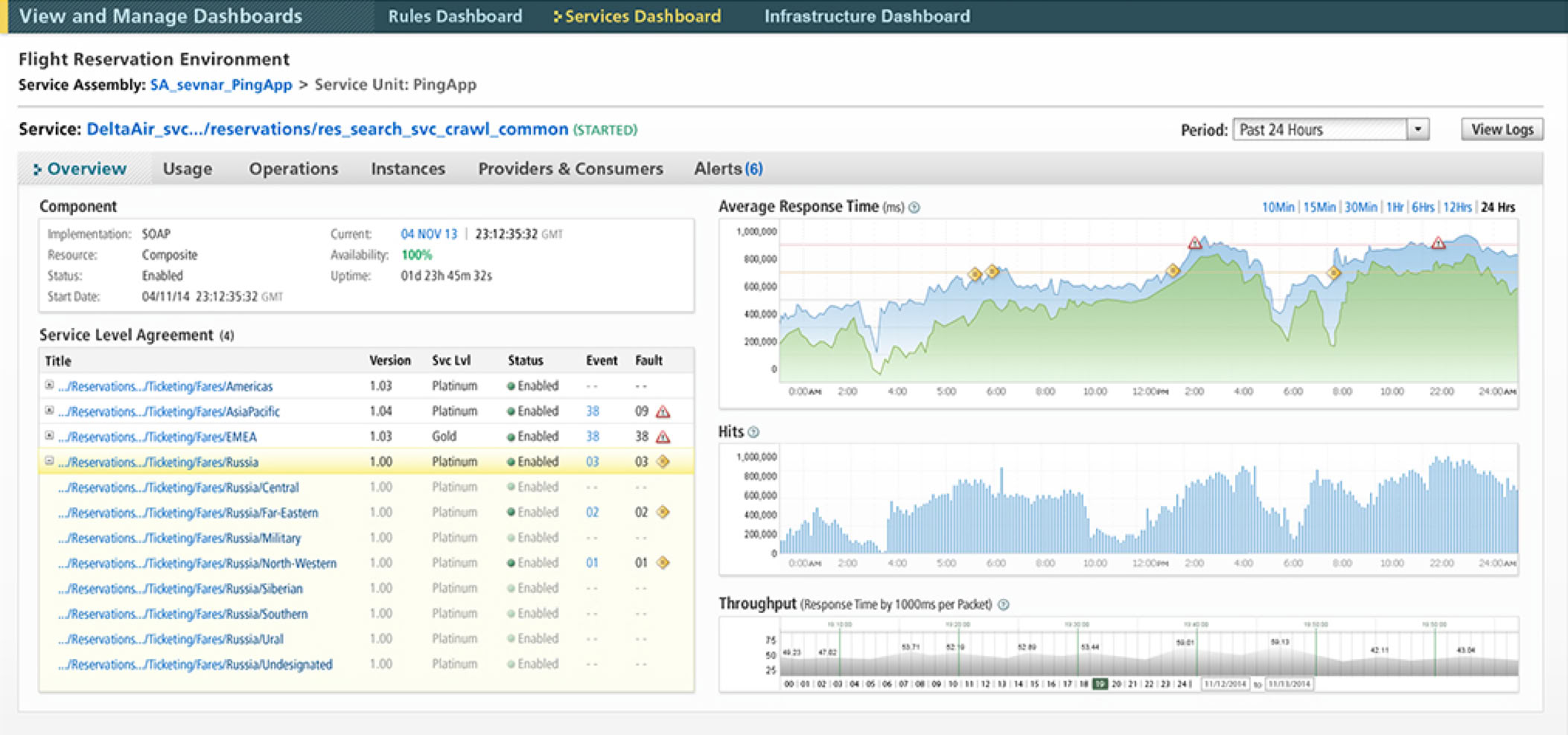 Service Performance Manager (SPM) automatically optimizes resources, services and service level agreements with fine granularity and precision, while remaining steadfastly vendor neutral, allowing it to manage many different applications and SOA platforms simultaneously. SPM allows the user to monitor and manage the performance of individual or grouped services, and provides the visibility in service monitoring from both, technical and business perspectives.